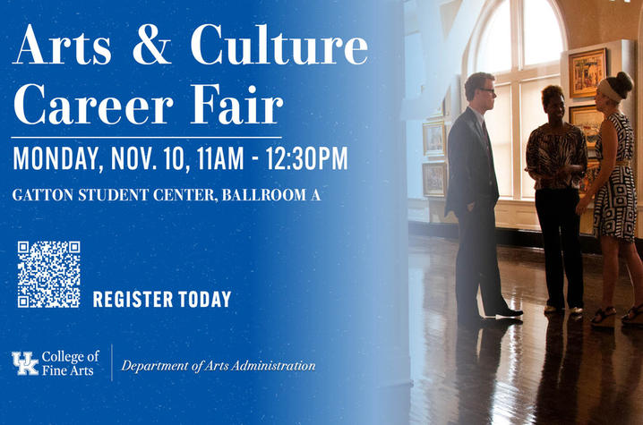 LEXINGTON, Ky. (Oct. 23, 2025) — The University of Kentucky Department of Arts Administration will host its annual Arts and Culture Career Fair 11 a.m.-12:30 p.m. Monday, Nov. 10, in the Gatton Student Center, Grand Ballroom A.