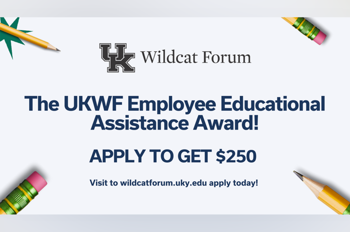 LEXINGTON, Ky (Jan. 8, 2026) — Applications for the University of Kentucky Wildcat Forum Employee Educational Assistance Award are now open. This award provides a $250 reimbursement to eligible UK employees to help with the cost of books and/or other materials, supplies and fees related to their UK coursework. This award complements the existing tuition waiver program for UK employees, the Employee Education Program (EEP).
